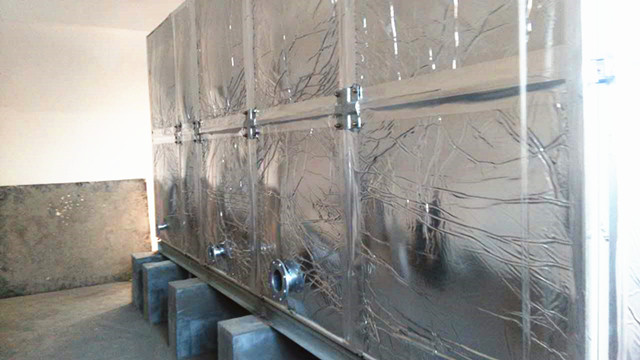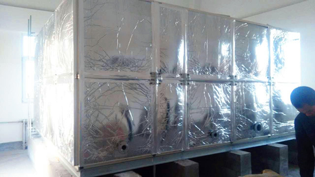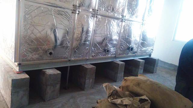 此水箱外圍為鋁箔布橡塑保溫,客戶在找到我們時根本不了解水箱保溫情況,只告訴我們水箱是在學校用,供學校學生用水。水溫要保存好才行。經過我們的了解,我公司向客戶提供使用玻璃鋼材質,外加橡塑保溫。水箱材質用水既安全、衛生又耐用,用個十多年沒問題,而且橡塑保溫價格便宜,水溫在24小時之內能保持10-30度左右是沒有問題的