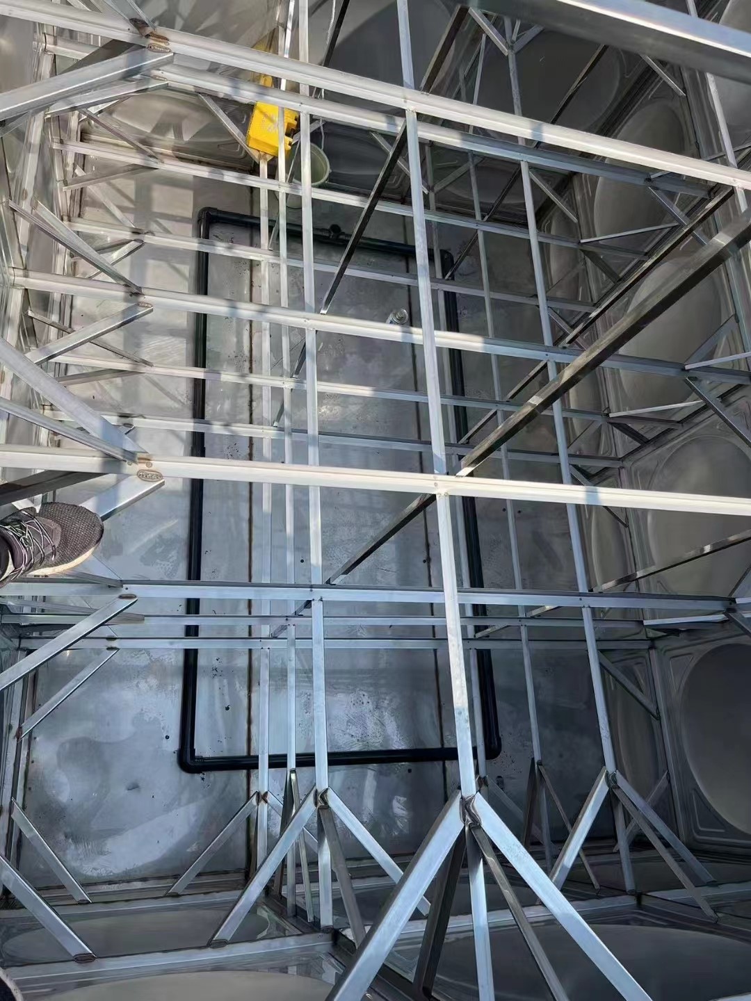 4、不銹鋼水箱的支架采用優質圓鋼焊接而成,支架與箱體之間通過螺栓連接。