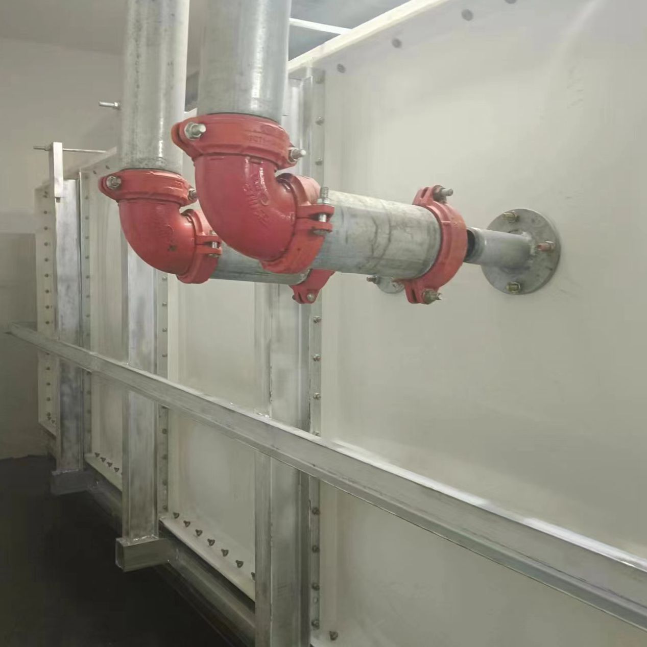 由于使用環境及使用介質所限,有些水箱內部盛有高濃度溶液,如:濃鹽水、海水等,對水箱內壁鋼板會有嚴重腐蝕,因此無法采用不銹鋼水箱或者鋼板水箱。正常玻璃鋼水箱板可以耐腐蝕,但是水箱內部又設有鋼制拉筋支撐等,故此也不適用以上介質使用。為了滿足特殊用戶的使用需求,經過承重及承壓測試后,這種無內件玻璃鋼水箱面世,它采用不同規格(1000*1000mm、1000*500mm、500*500mm)的玻璃鋼模壓板組裝,水箱內部不設有任何鋼制配件,水箱外部及底部采用工字鋼加固,所有法蘭采用ABS材質俗稱塑料材質,外觀整潔無變形,內部無配件,易清洗、維護方便,延長了水箱的使用壽命,滿足特殊用戶的特殊需求。