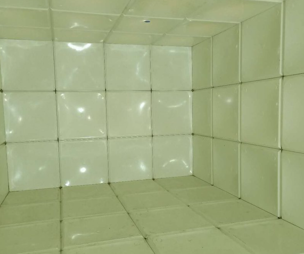 玻璃鋼水箱由整體優質的SMC水箱板拼裝而成。廣泛適用于工礦、企事業單位、住宅、賓館、飯店等建筑,作為生活飲用水、中水處理、消防用水及其他用水儲水設施。由于使用環境及使用介質所限,有些水箱內部盛有高濃度溶液,如:濃鹽水、海水等,對水箱內壁鋼板會有嚴重腐蝕,因此無法采用不銹鋼水箱或者鋼板水箱。正常玻璃鋼水箱板可以耐腐蝕,但是水箱內部又設有鋼制拉筋支撐等,故此也不適用以上介質使用。為了滿足特殊用戶的使用需求,經過承重及承壓測試后,這種無內件玻璃鋼水箱面世,它采用不同規格(1000*1000mm、1000*500mm、500*500mm)的玻璃鋼模壓板組裝,水箱內部不設有任何鋼制配件,水箱外部及底部采用工字鋼加固,所有法蘭采用ABS材質俗稱塑料材質,外觀整潔無變形,內部無配件,易清洗、維護方便,延長了水箱的使用壽命,滿足特殊用戶的特殊需求。