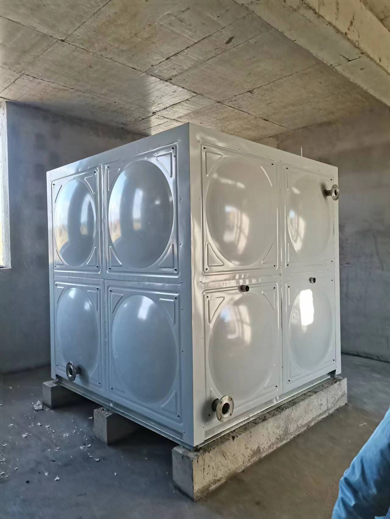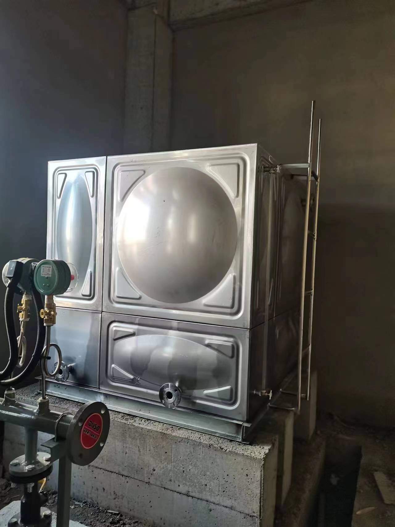 我廠承接的豐寧寧煤基建項目的4臺水箱已安裝試水完工。分別為2臺不銹鋼保溫水箱,采用的是5公分聚氨酯加白色彩鋼板保溫。2臺不銹鋼消防水箱。不銹鋼水箱具有使用范圍廣、使用壽命長、外形美觀、清洗維修簡便、適應性強等特點。并且任意組合,造型,容積可滿足任何設計要求。