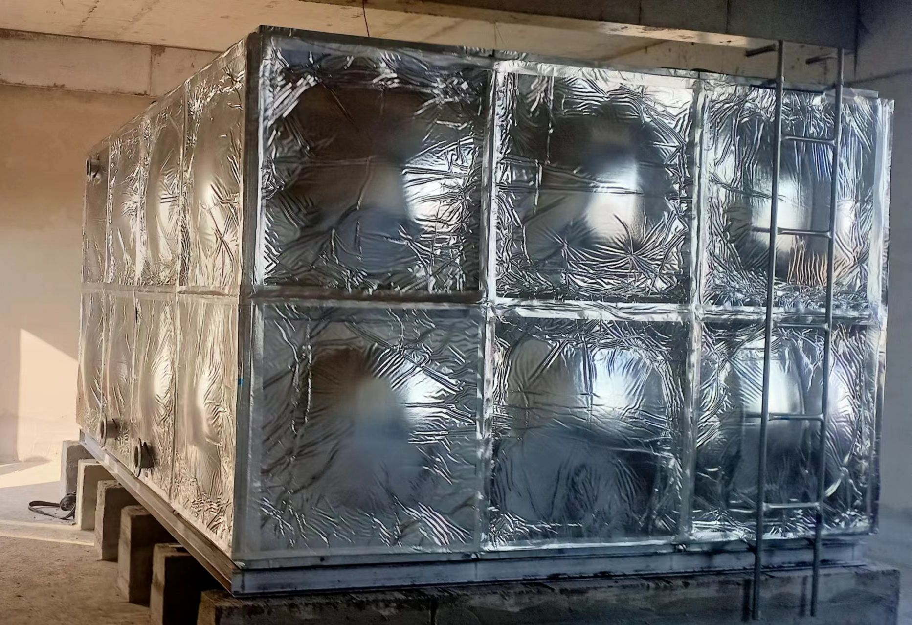 我公司承接的山東省濱州市無棣縣龍灣鎮(zhèn)醫(yī)院水箱項目已經(jīng)安裝試水完成,此次水箱用做消防儲水使用。裝配式鍍鋅鋼板水箱制造、安裝不受土建施工影響,不用焊接設(shè)備,水箱表面采用熱鋅防腐處理,使水質(zhì)不受二次污染,并符合建筑產(chǎn)品標準化、系列化、工廠化要求。因其優(yōu)秀的抗氧化能力較不銹鋼價格低的性能的越來越多的應(yīng)用到實際生活中。