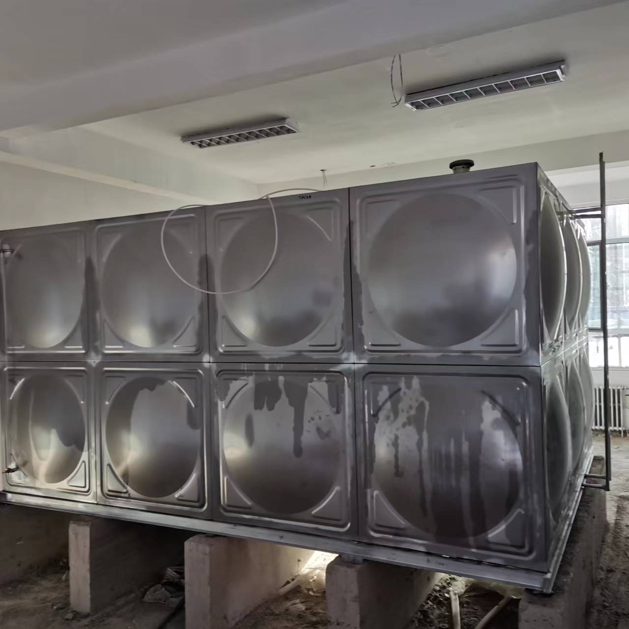 我司承接的河北省石家莊市長安區第九十三中學,不銹鋼水箱項目已完工。不銹鋼水箱采用SUS304、SUS316L、SUS444等不銹鋼板,沖壓成型。一般沖壓成三種尺寸,分別是1x1米、1x0.5米和0.5x0.5米三種,周邊用鎢極氬弧焊接,具有強度高、重量輕、成本低、環保衛生等特點。