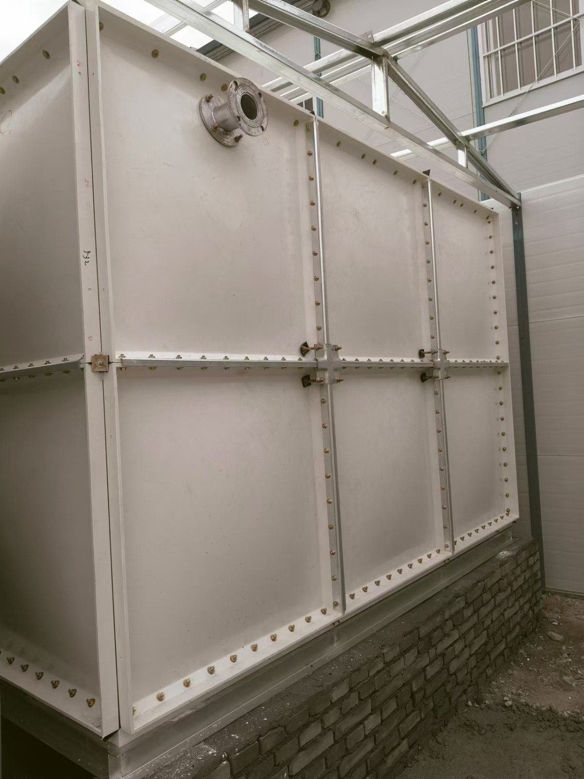 我司承接的濟南市食鹽配送中心對過工地臨時用消防水箱項目,已安裝試水完畢。玻璃鋼水箱是由SMC模壓板塊、密封材料、金屬結構件及配管系統現場組裝而成。給設計和施工帶來極大方便。一般水箱按標準設計,特殊水箱需要專門設計。可根據用戶需要組裝0.125-1500立方米的水箱。該密封帶耐水、彈性大、變型小,緊固密封。水箱整體強度高,不易滲漏,不易變形,保養、檢修方便。