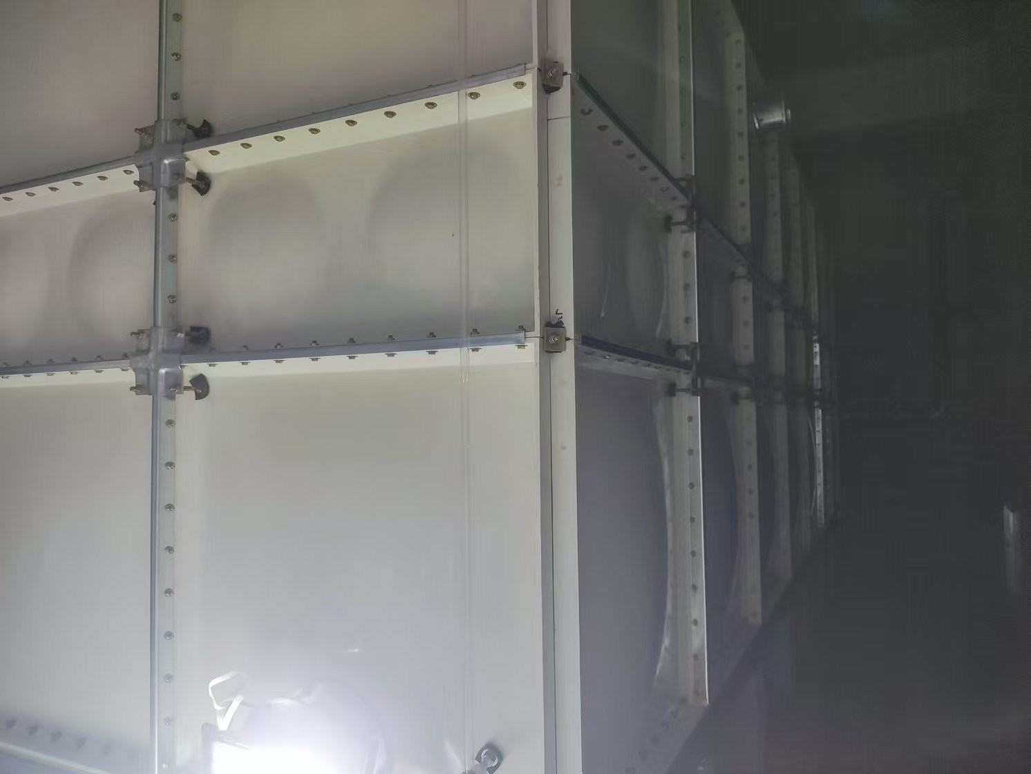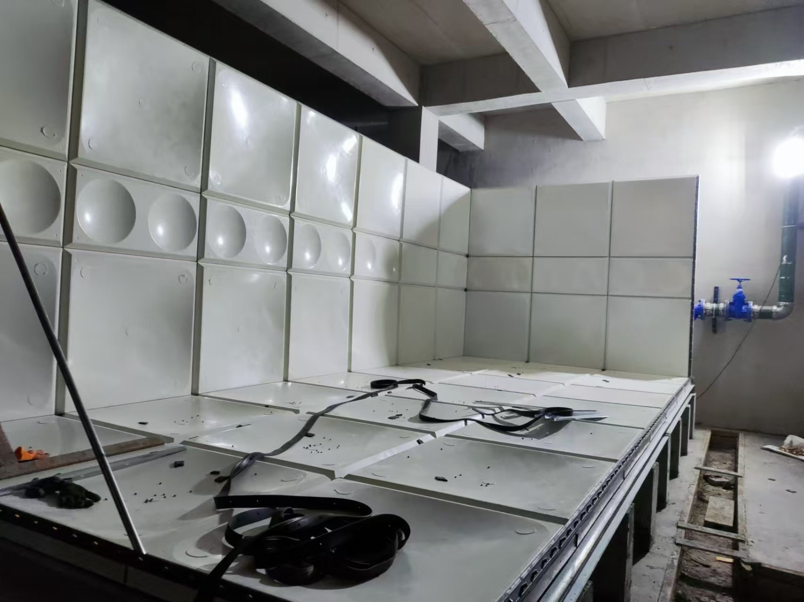 d.重量輕:混凝土水箱容重與自身重量之比為1:1,SMC模壓水箱為1:0.1-0.2,所以在設(shè)計(jì)過(guò)程中無(wú)須考慮自身重量,因此被稱(chēng)為輕便式水箱。