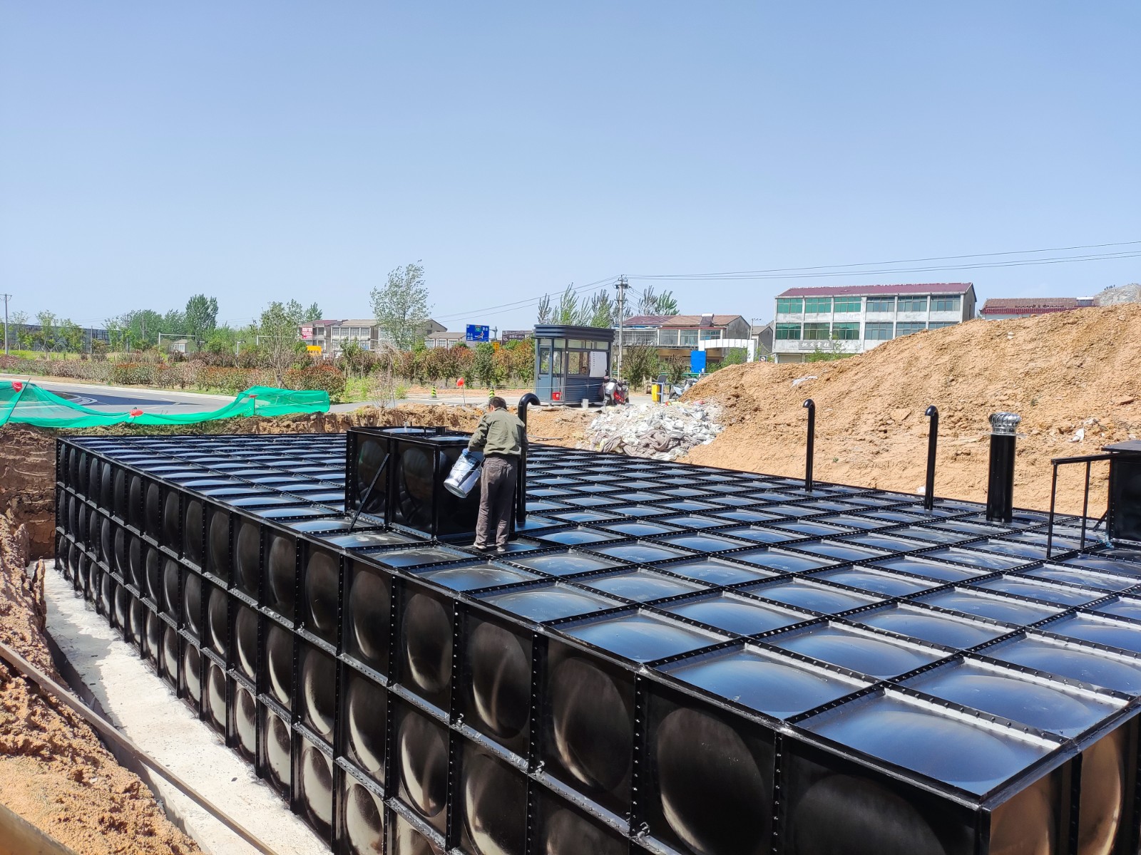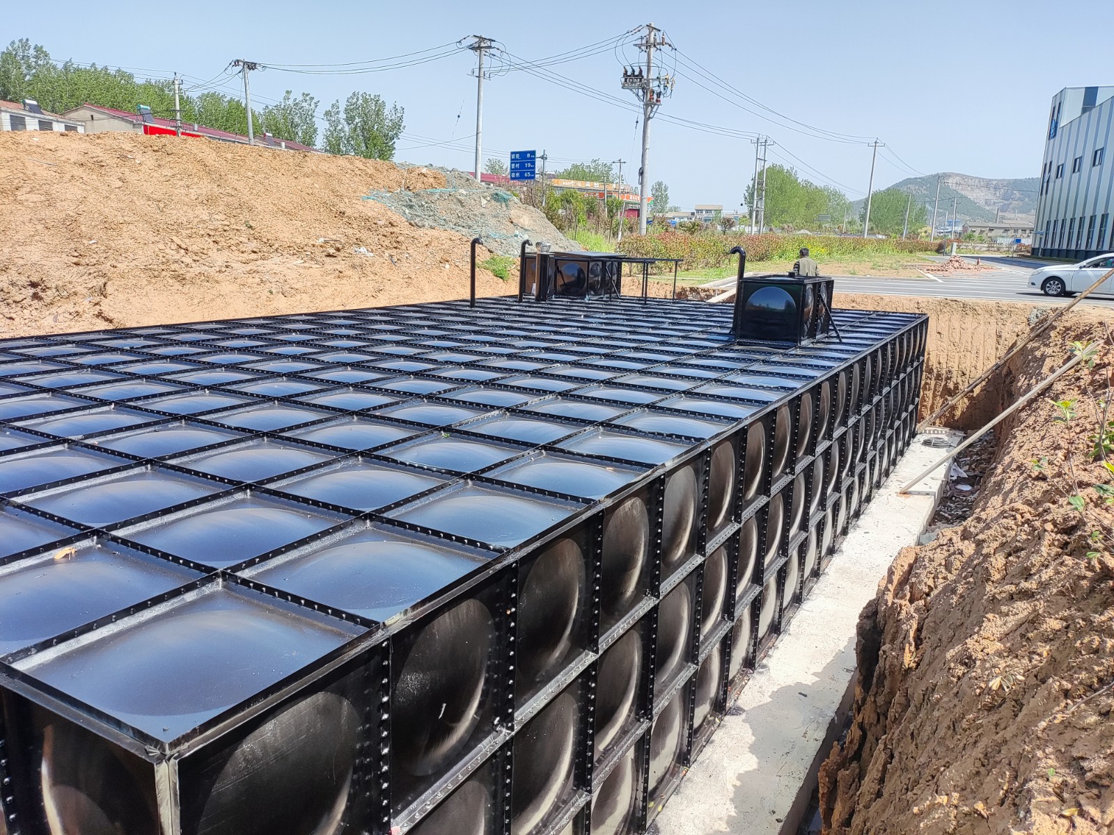 我司承接的江蘇徐州蕭縣消防地埋水箱項目已安裝完畢,等待試水驗收階段。地埋式水箱一體化泵站是一種集儲水、加壓、控制等功能于一體的地下式供水設備,廣泛應用于市政供水、消防儲備及雨水回收等領域。