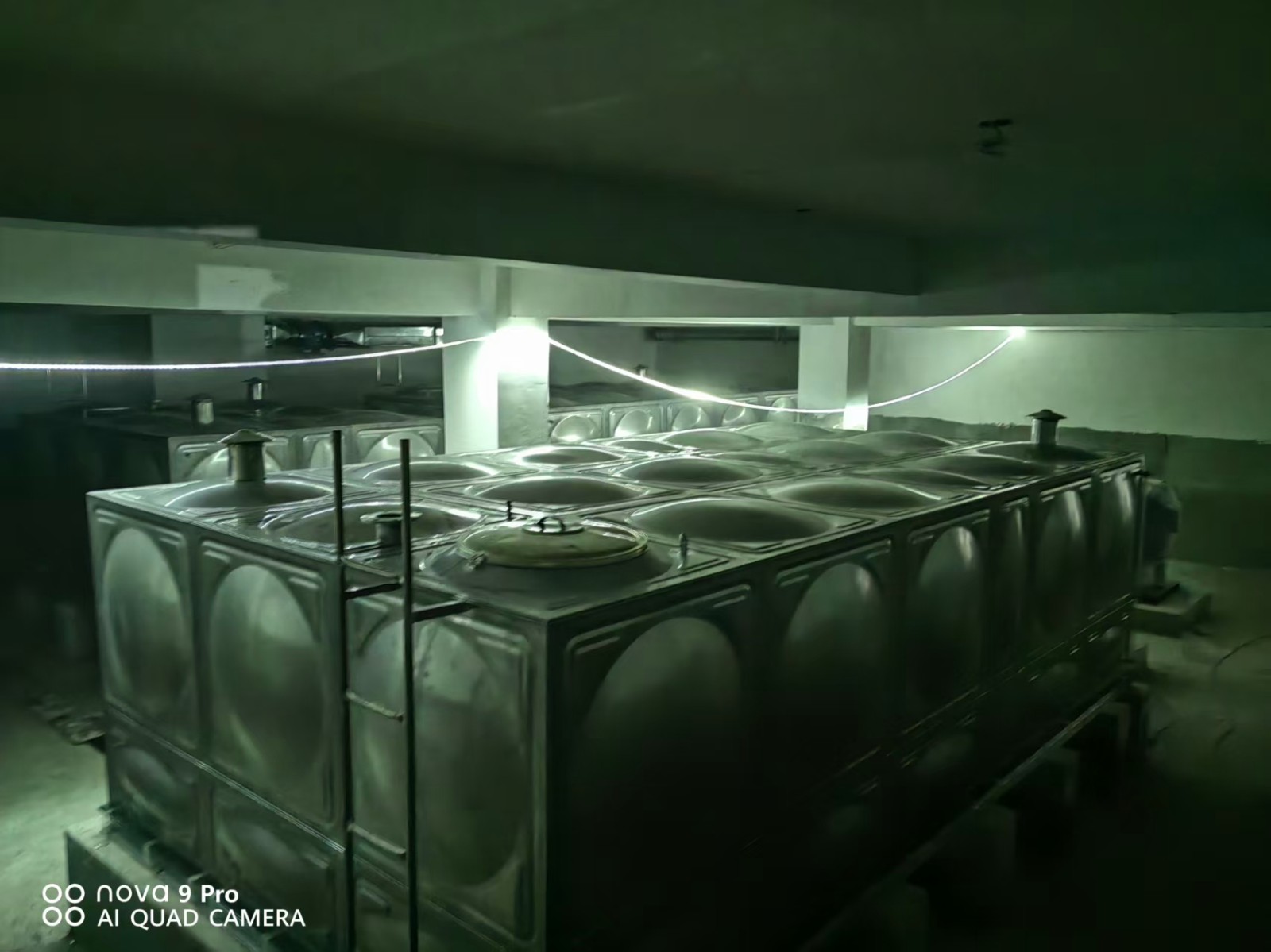 我廠承接的西安市華茂府二期的給水泵房水箱已安裝完畢。不銹鋼焊接水箱,是指容器本體用不銹鋼板沖壓帶一定凹凸形狀,使之鋼度大大提高,再焊接成薄殼箱體的新型水箱,是目前國內較先進、較美觀、較適用的水箱,其結構精巧、合理、先進,用材省,可在民用及工業建筑中廣泛采用,是儲存、調節用水的理想設備。