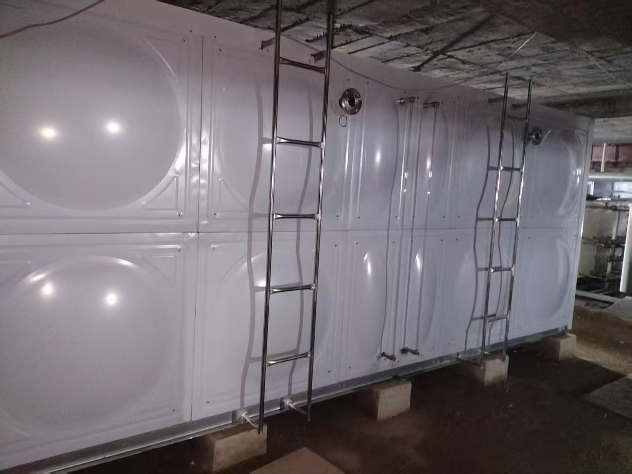 我司承接的山東省煙臺市富凱商廈泳池均衡保溫水箱,此水箱已安裝并驗收試水完工。熱鍍鋅是將鋅金屬通過熱融化浸泡在鋼板表面形成的一層鋅層,從而起到防止鋼材腐蝕的作用。這種處理方式使得熱鍍鋅鋼板水箱能夠在惡劣的環境中長期使用,不易生銹,大大延長了水箱的使用壽命。
